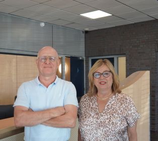 Har Deckers en Mariet Stukstette zijn allebei al 45 jaar in dienst. Ze leerden elkaar kennen bij de voorloper van Novoferm (Flexion/Flexidoor) en groeiden mee met de fusie tot het bedrijf dat we vandaag kennen. Wat hen drijft? De sfeer, de collega’s en de afwisseling in hun werk. “We hebben altijd ons eigen ding gedaan op verschillende afdelingen, maar als collega’s zijn we er voor elkaar, én voor Novoferm.” Een bijzonder jubileum en een prachtig voorbeeld van loyaliteit, werkplezier en betrokkenheid.