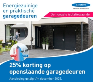 Profiteer nu van 25% korting op openslaande garagedeuren.
