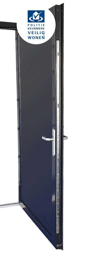 De deur is standaard uitgerust met een vijfpuntsvergrendeling, gecombineerd met 3-sterren SKG-veiligheidsbeslag en verstelbare sluitplaten. Optioneel is de deur verkrijgbaar met een éénpuntsvergrendeling en standaard beslag, tegen een lagere prijs